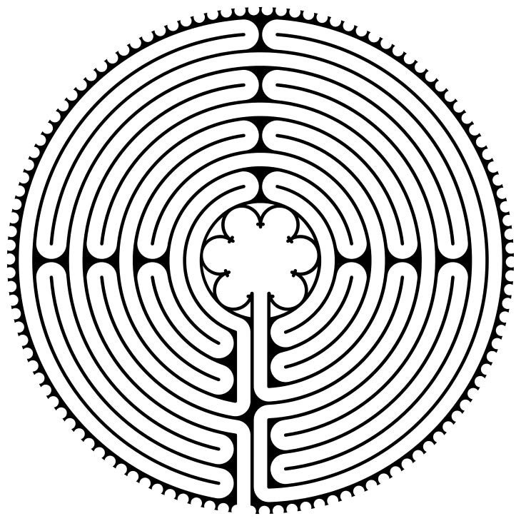 Le labyrinthe de la cathédrale de Chartres est l’un des plus célèbres labyrinthes d’Europe. (XIIè)