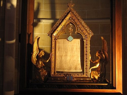 Notre-Dame de Chartres est dédiée à la Vierge Marie. Le Voile de la Vierge qui se trouve dans la cathédrale est l'une des reliques les plus célèbres.